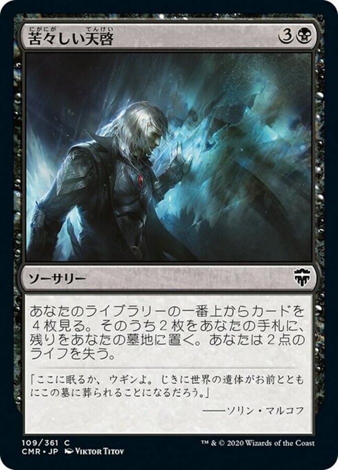 | Rules | Look at the top four cards of your library. Put two of them into your hand and the rest into your graveyard. You lose 2 life. |