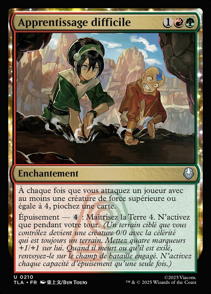 | Rules | Whenever you attack a player with one or more creatures with power 4 or greater, draw a card. Exhaust — : Earthbend 4. Activate only during your turn. (Target land you control becomes a 0/0 creature with haste that's still a land. Put four +1/+1 counters on it. When it dies or is exiled, return it to the battlefield tapped. Activate each exhaust ability only once.) |