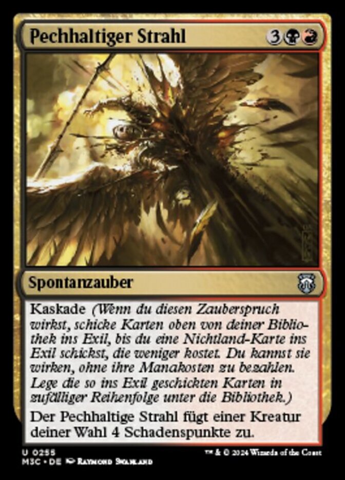 | Rules | Cascade (When you cast this spell, exile cards from the top of your library until you exile a nonland card that costs less. You may cast it without paying its mana cost. Put the exiled cards on the bottom of your library in a random order.) Bituminous Blast deals 4 damage to target creature. |