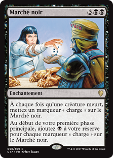 | Rules | Whenever a creature dies, put a charge counter on Black Market. At the beginning of your precombat main phase, add for each charge counter on Black Market. |
