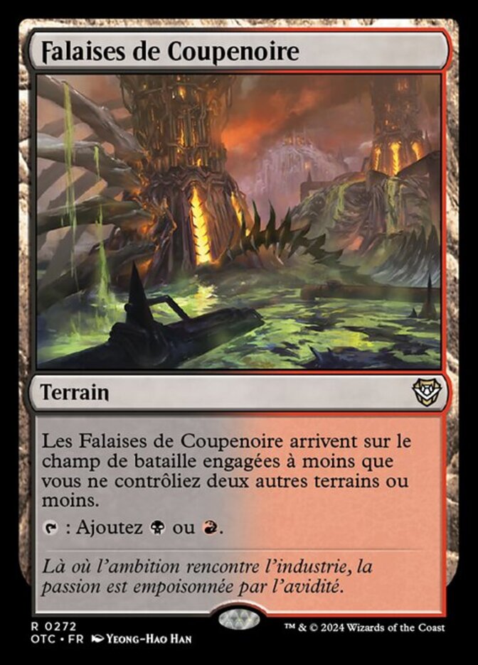 | Rules | Blackcleave Cliffs enters the battlefield tapped unless you control two or fewer other lands. : Add or . |