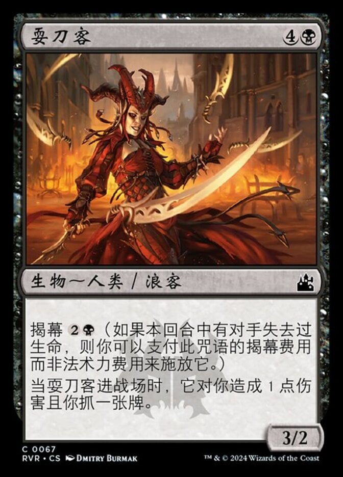 | Rules | Spectacle (You may cast this spell for its spectacle cost rather than its mana cost if an opponent lost life this turn.) When Blade Juggler enters the battlefield, it deals 1 damage to you and you draw a card. |