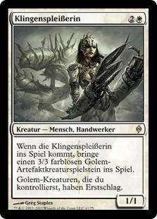 | Rules | When Blade Splicer enters the battlefield, create a 3/3 colorless Phyrexian Golem artifact creature token. Golems you control have first strike. |