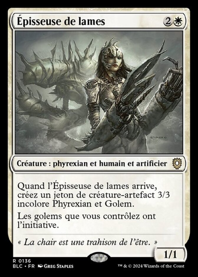 | Rules | When Blade Splicer enters the battlefield, create a 3/3 colorless Phyrexian Golem artifact creature token. Golems you control have first strike. |
