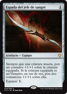 | Rules | Whenever a creature dies, put a +1/+1 counter on equipped creature. If equipped creature is a Vampire, put two +1/+1 counters on it instead. Equip |