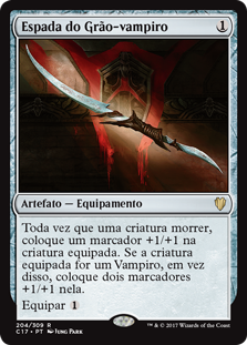 | Rules | Whenever a creature dies, put a +1/+1 counter on equipped creature. If equipped creature is a Vampire, put two +1/+1 counters on it instead. Equip |