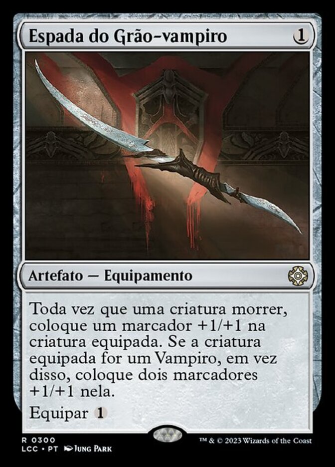 | Rules | Whenever a creature dies, put a +1/+1 counter on equipped creature. If equipped creature is a Vampire, put two +1/+1 counters on it instead. Equip |