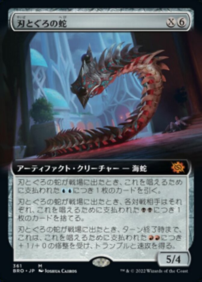 | Rules | When Bladecoil Serpent enters the battlefield, for each spent to cast it, draw a card. When Bladecoil Serpent enters the battlefield, for each spent to cast it, each opponent discards a card. When Bladecoil Serpent enters the battlefield, for each spent to cast it, it gets +1/+0 and gains trample and haste until end of turn. |