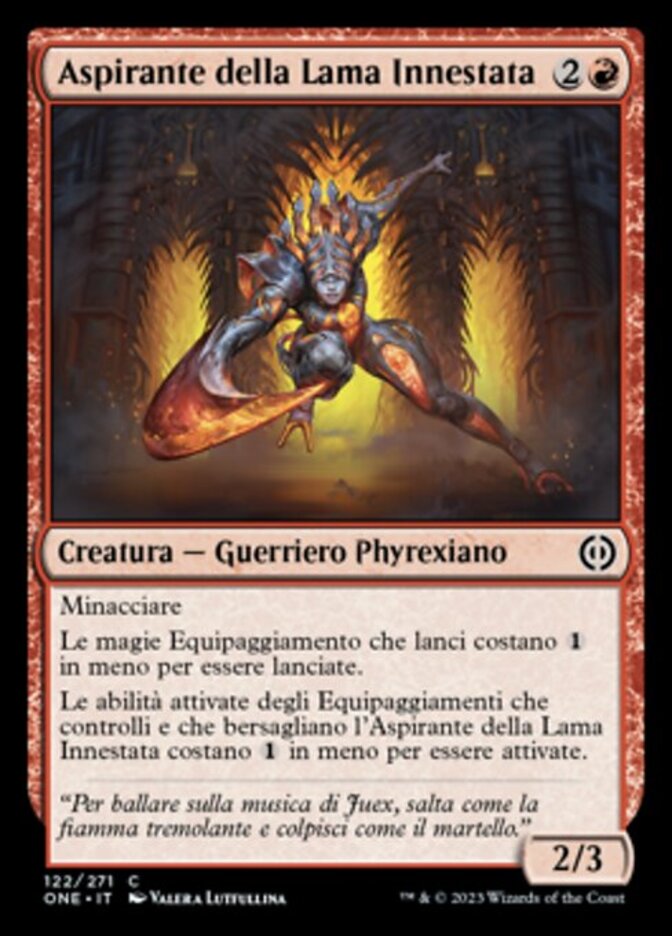 | Rules | Menace Equipment spells you cast cost less to cast. Activated abilities of Equipment you control that target Bladegraft Aspirant cost less to activate. |