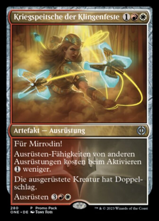| Rules | For Mirrodin! (When this Equipment enters the battlefield, create a 2/2 red Rebel creature token, then attach this to it.) Equip abilities you activate of other Equipment cost less to activate. Equipped creature has double strike. Equip |