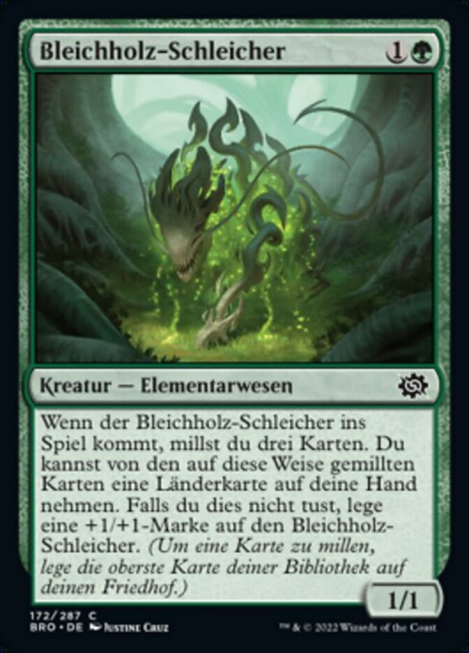 | Rules | When Blanchwood Prowler enters the battlefield, mill three cards. You may put a land card from among the cards milled this way into your hand. If you don't, put a +1/+1 counter on Blanchwood Prowler. (To mill a card, put the top card of your library into your graveyard.) |