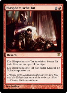 | Rules | This spell costs less to cast for each creature on the battlefield. Blasphemous Act deals 13 damage to each creature. |