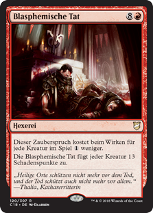 | Rules | This spell costs less to cast for each creature on the battlefield. Blasphemous Act deals 13 damage to each creature. |