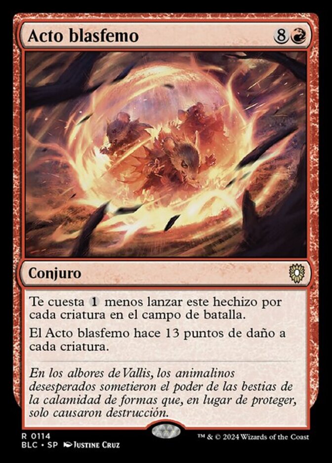 | Rules | This spell costs less to cast for each creature on the battlefield. Blasphemous Act deals 13 damage to each creature. |