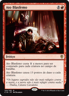 | Rules | This spell costs less to cast for each creature on the battlefield. Blasphemous Act deals 13 damage to each creature. |