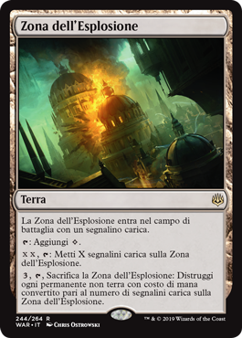 | Rules | Blast Zone enters the battlefield with a charge counter on it. : Add . , : Put X charge counters on Blast Zone. , , Sacrifice Blast Zone: Destroy each nonland permanent with mana value equal to the number of charge counters on Blast Zone. |