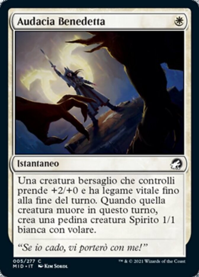 | Rules | Target creature you control gets +2/+0 and gains lifelink until end of turn. When that creature dies this turn, create a 1/1 white Spirit creature token with flying. |