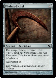 | Rules | Equipped creature gets +1/+0 and has wither. (It deals damage to creatures in the form of -1/-1 counters.) Equip |