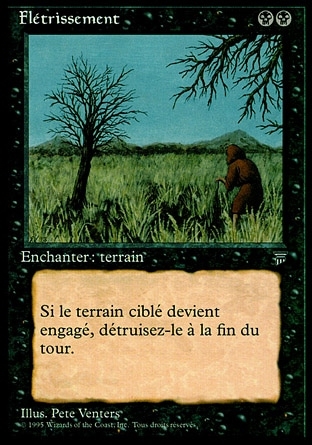 | Rules | Enchant land When enchanted land becomes tapped, destroy it. |