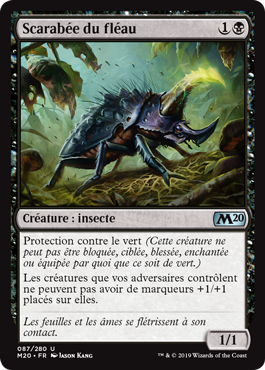 | Rules | Protection from green (This creature can't be blocked, targeted, dealt damage, enchanted, or equipped by anything green.) Creatures your opponents control can't have +1/+1 counters put on them. |