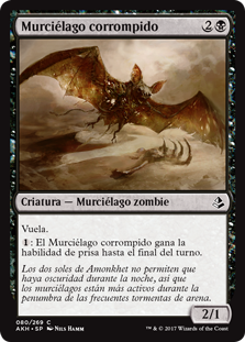 | Flavor | Amonkhet's dual suns don't allow for the darkness of night, so bats are most active under the gloom of the frequent sandstorms. |