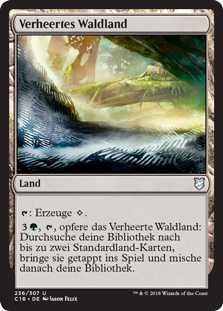 | Rules | : Add . , , Sacrifice Blighted Woodland: Search your library for up to two basic land cards, put them onto the battlefield tapped, then shuffle. |