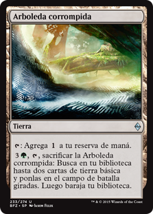 | Rules | : Add . , , Sacrifice Blighted Woodland: Search your library for up to two basic land cards, put them onto the battlefield tapped, then shuffle. |