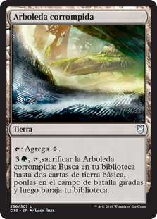 | Rules | : Add . , , Sacrifice Blighted Woodland: Search your library for up to two basic land cards, put them onto the battlefield tapped, then shuffle. |