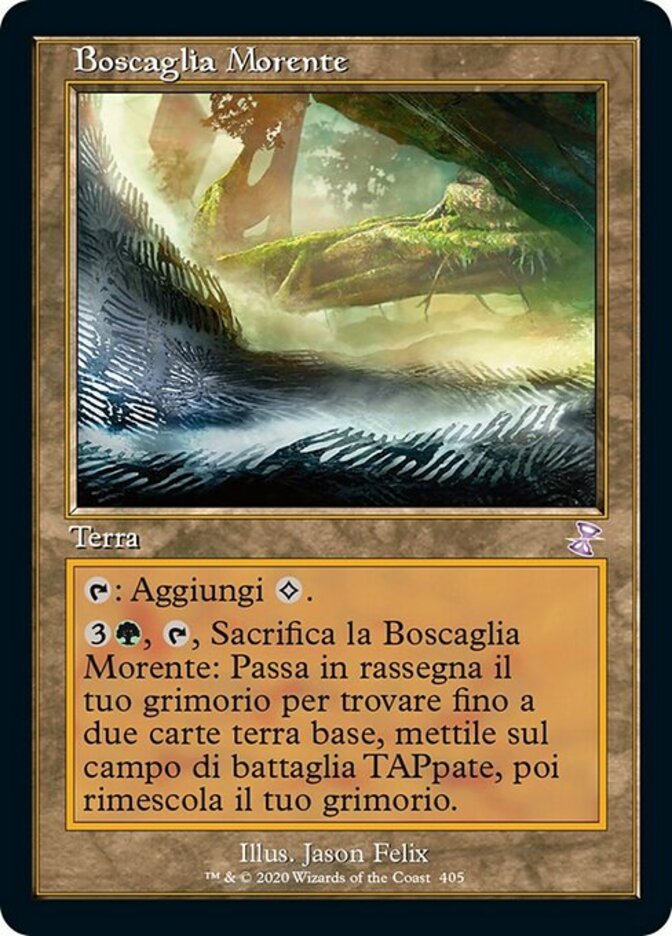 | Rules | : Add . , , Sacrifice Blighted Woodland: Search your library for up to two basic land cards, put them onto the battlefield tapped, then shuffle. |