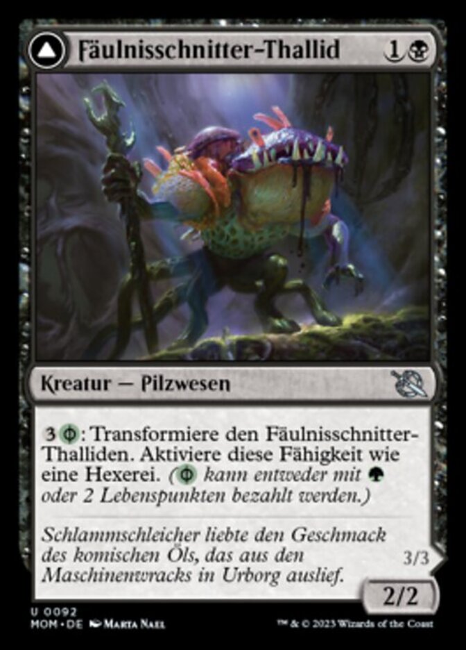| Rules | : Transform Blightreaper Thallid. Activate only as a sorcery. ( can be paid with either or 2 life.) // When this creature transforms into Blightsower Thallid or dies, create a 1/1 green Phyrexian Saproling creature token. |