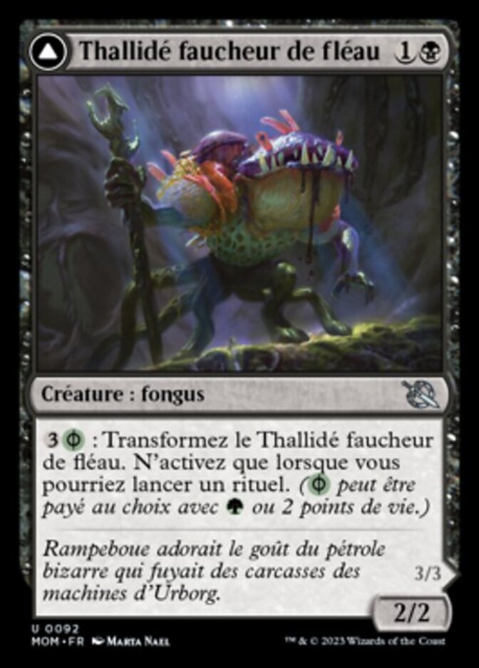 | Rules | : Transform Blightreaper Thallid. Activate only as a sorcery. ( can be paid with either or 2 life.) // When this creature transforms into Blightsower Thallid or dies, create a 1/1 green Phyrexian Saproling creature token. |