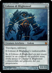 If Blightsteel Colossus would be put into a graveyard from anywhere, reveal Blightsteel Colossus and shuffle it into its owner's library instead.
