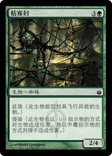| Rules | Reach (This creature can block creatures with flying.) Infect (This creature deals damage to creatures in the form of -1/-1 counters and to players in the form of poison counters.) |
