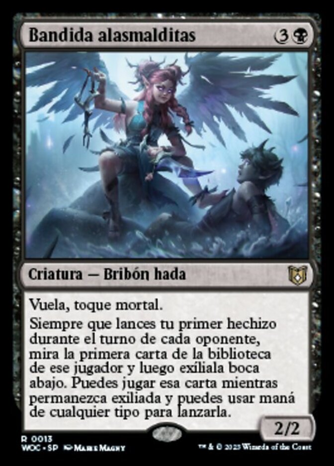 | Rules | Flying, deathtouch Whenever you cast your first spell during each opponent's turn, look at the top card of that player's library, then exile it face down. You may play that card for as long as it remains exiled, and mana of any type can be spent to cast it. |