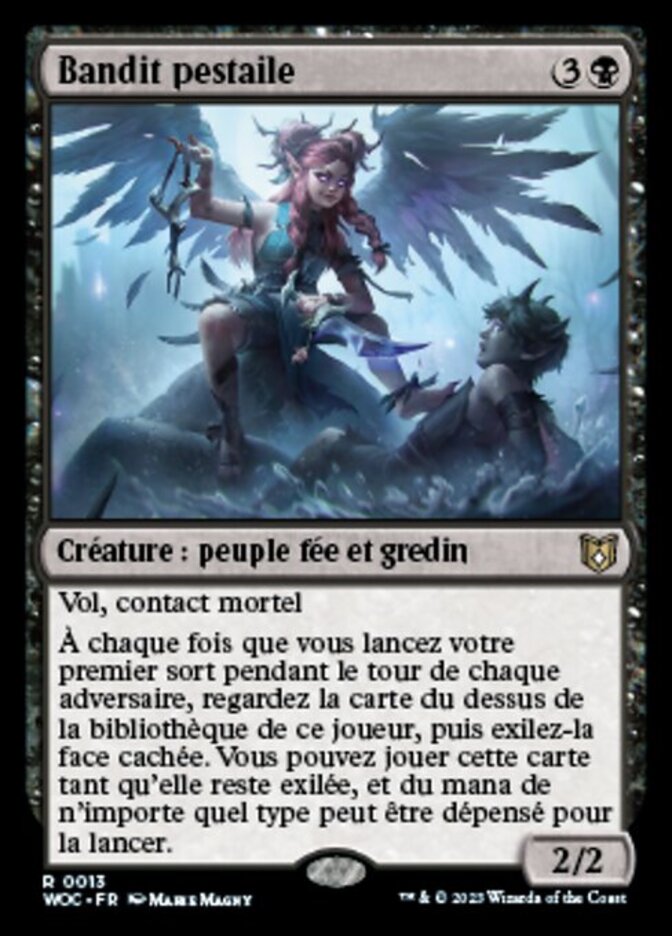 | Rules | Flying, deathtouch Whenever you cast your first spell during each opponent's turn, look at the top card of that player's library, then exile it face down. You may play that card for as long as it remains exiled, and mana of any type can be spent to cast it. |