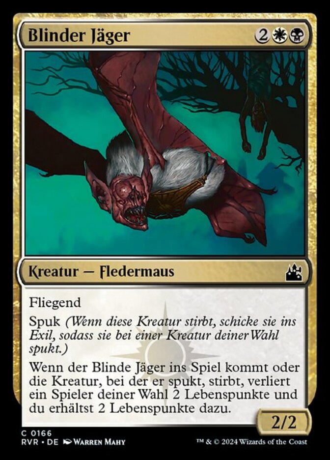 | Rules | Flying Haunt (When this creature dies, exile it haunting target creature.) When Blind Hunter enters the battlefield or the creature it haunts dies, target player loses 2 life and you gain 2 life. |