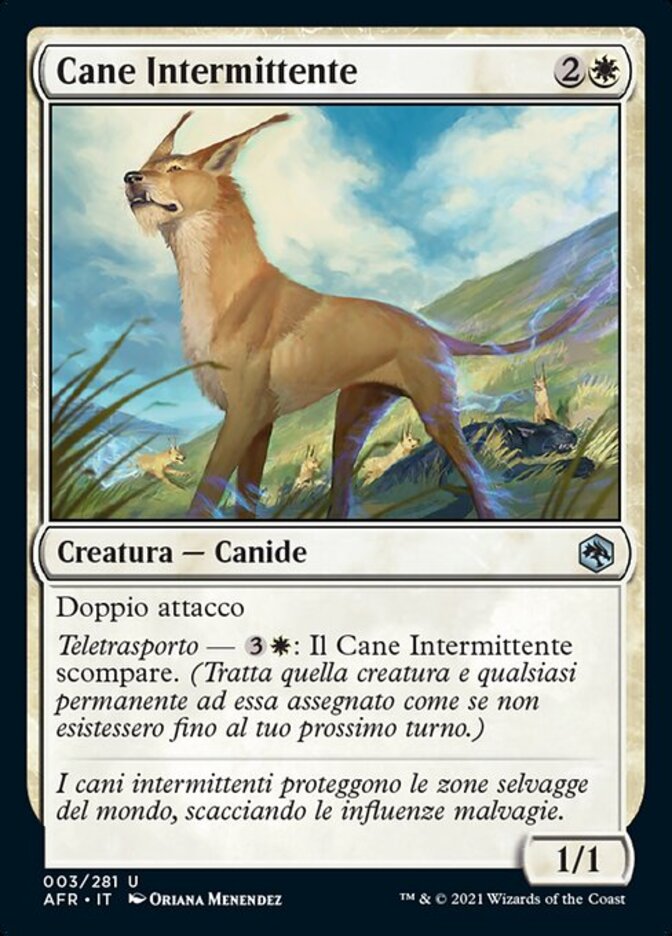 | Rules | Double strike Teleport — : Blink Dog phases out. (Treat it and anything attached to it as though they don't exist until your next turn.) |