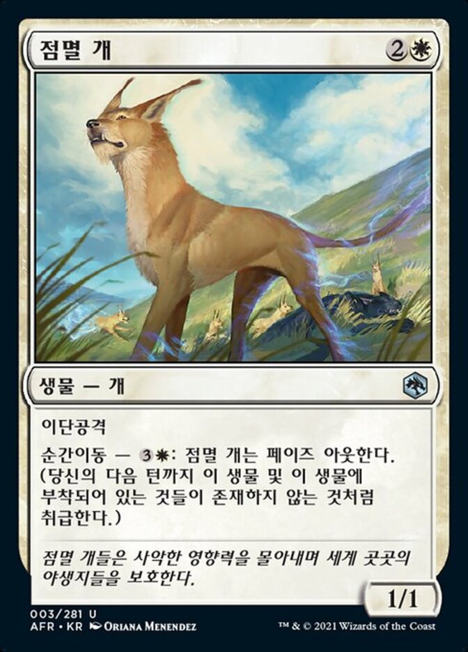| Rules | Double strike Teleport — : Blink Dog phases out. (Treat it and anything attached to it as though they don't exist until your next turn.) |