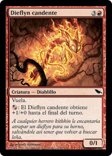 | Flavor | Any kithkin smith would love to catch a dieflyn for her kiln, relieving her of ever having to gather fuel again. |