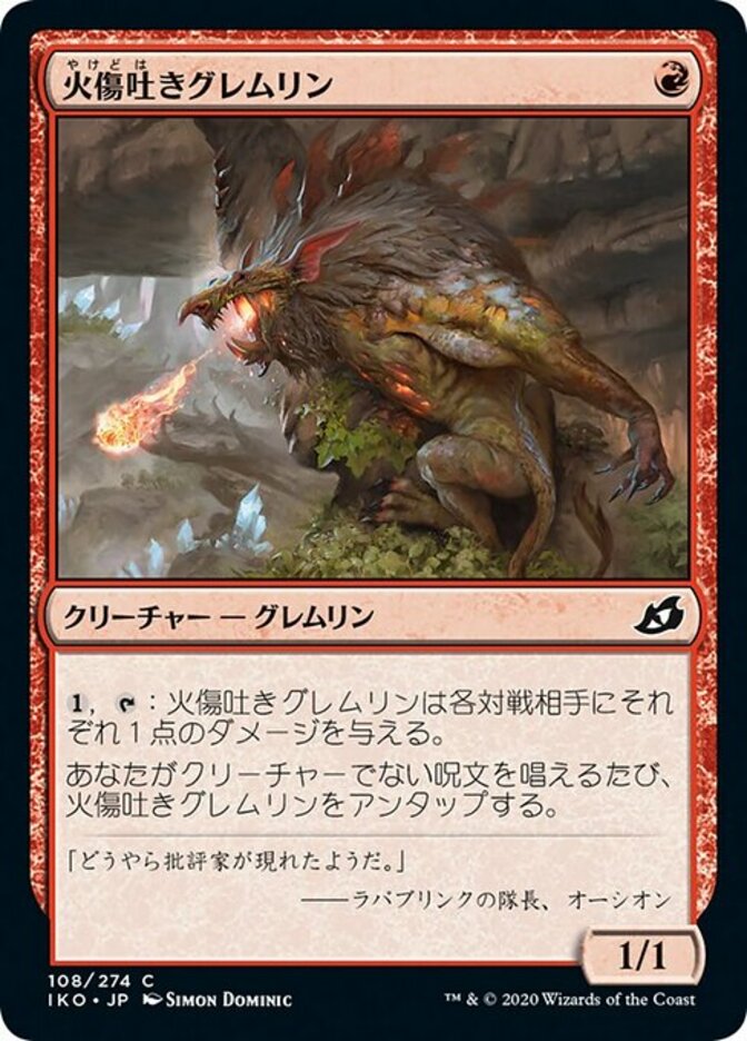 | Rules | , : Blisterspit Gremlin deals 1 damage to each opponent. Whenever you cast a noncreature spell, untap Blisterspit Gremlin. |