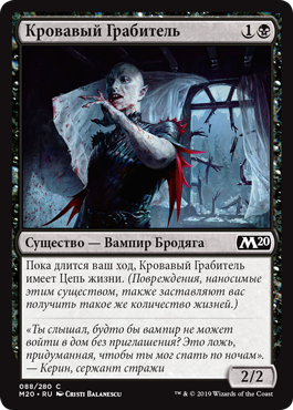 | Rules | As long as it's your turn, Blood Burglar has lifelink. (Damage dealt by this creature also causes you to gain that much life.) |