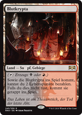 | Rules | (: Add or .) As Blood Crypt enters the battlefield, you may pay 2 life. If you don't, it enters the battlefield tapped. |