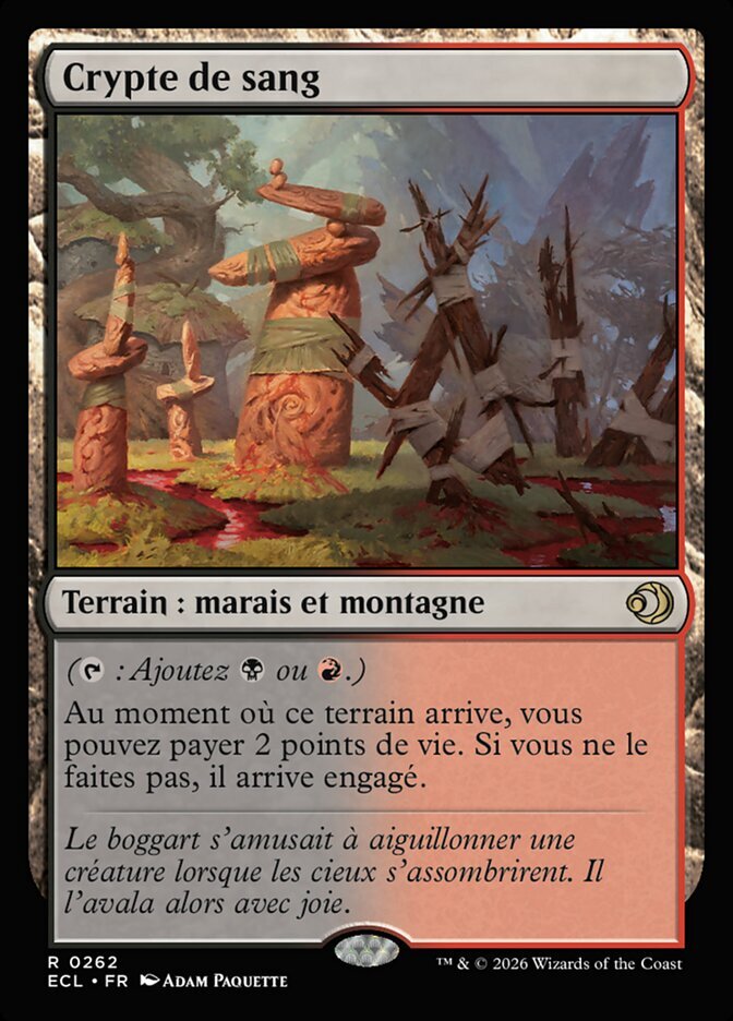 | Rules | (: Add or .) As Blood Crypt enters the battlefield, you may pay 2 life. If you don't, it enters the battlefield tapped. |