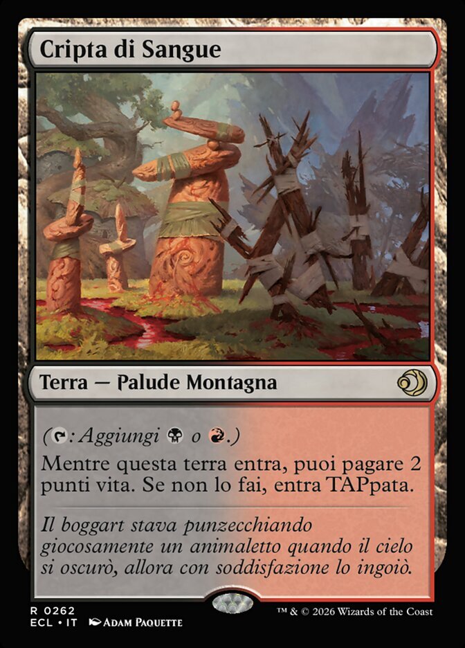 | Rules | (: Add or .) As Blood Crypt enters the battlefield, you may pay 2 life. If you don't, it enters the battlefield tapped. |