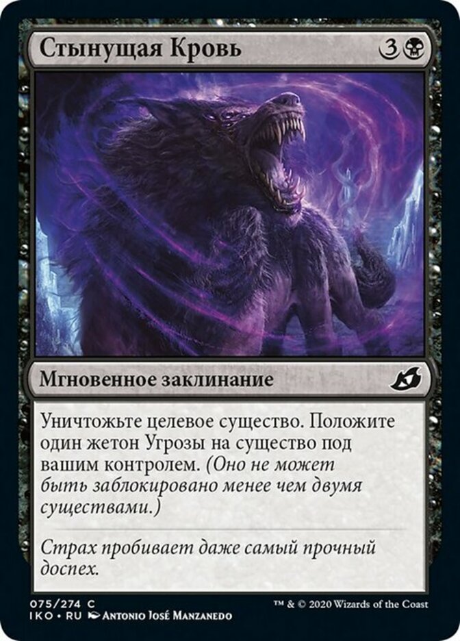 | Rules | Destroy target creature. Put a menace counter on a creature you control. (It can't be blocked except by two or more creatures.) |