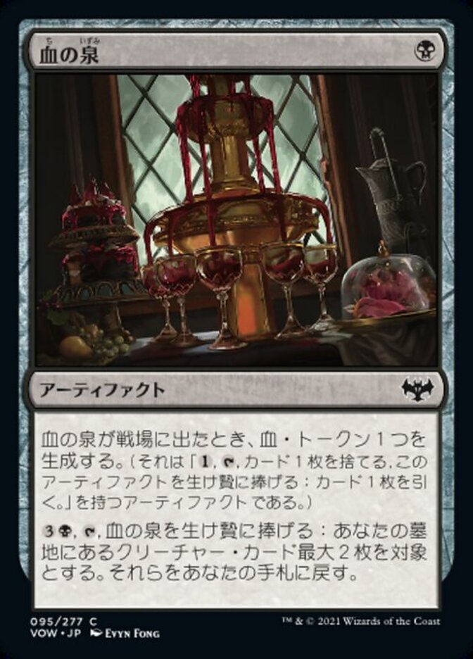 | Rules | When Blood Fountain enters the battlefield, create a Blood token. (It's an artifact with ", , Discard a card, Sacrifice this artifact: Draw a card.") , , Sacrifice Blood Fountain: Return up to two target creature cards from your graveyard to your hand. |