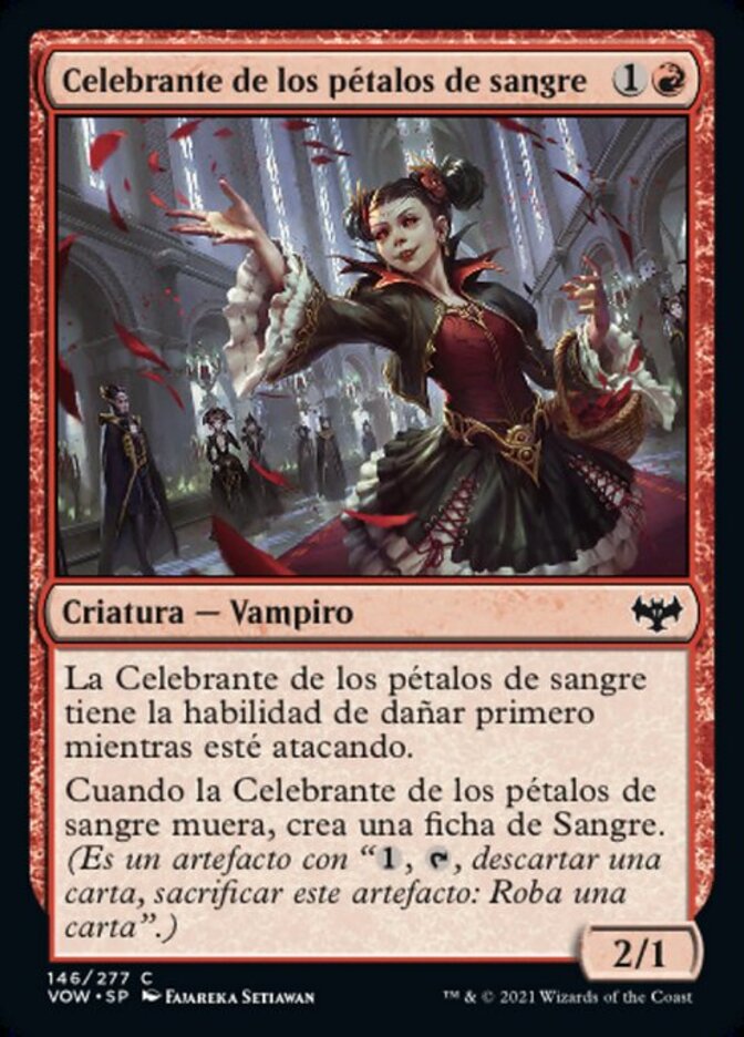 | Rules | Blood Petal Celebrant has first strike as long as it's attacking. When Blood Petal Celebrant dies, create a Blood token. (It's an artifact with ", , Discard a card, Sacrifice this artifact: Draw a card.") |