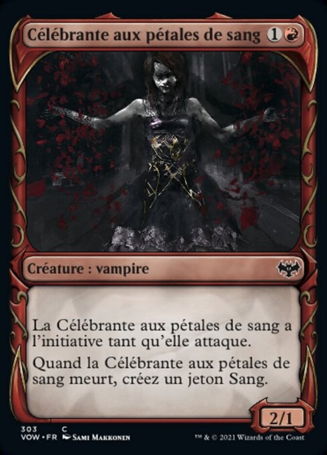 | Rules | Blood Petal Celebrant has first strike as long as it's attacking. When Blood Petal Celebrant dies, create a Blood token. (It's an artifact with ", , Discard a card, Sacrifice this artifact: Draw a card.") |