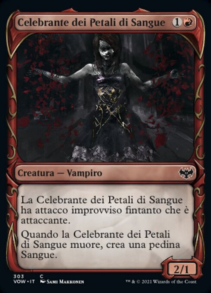 | Rules | Blood Petal Celebrant has first strike as long as it's attacking. When Blood Petal Celebrant dies, create a Blood token. (It's an artifact with ", , Discard a card, Sacrifice this artifact: Draw a card.") |