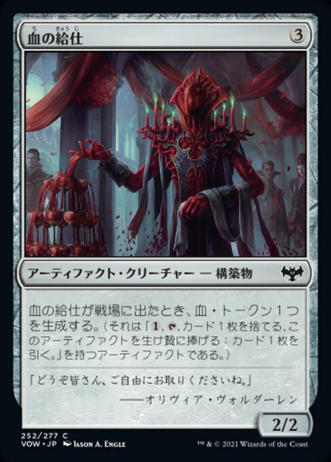 | Rules | When Blood Servitor enters the battlefield, create a Blood token. (It's an artifact with ", , Discard a card, Sacrifice this artifact: Draw a card.") |